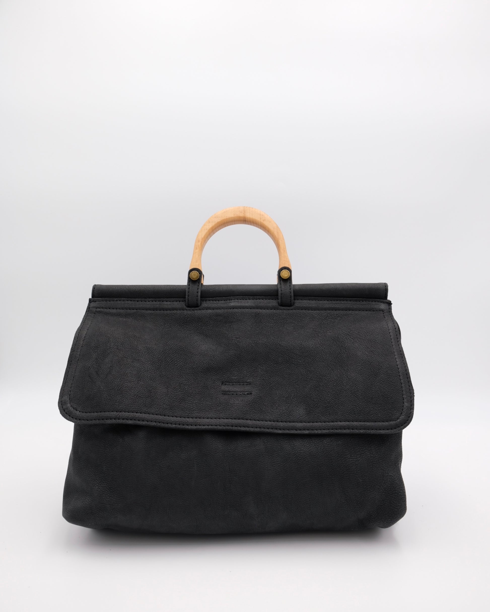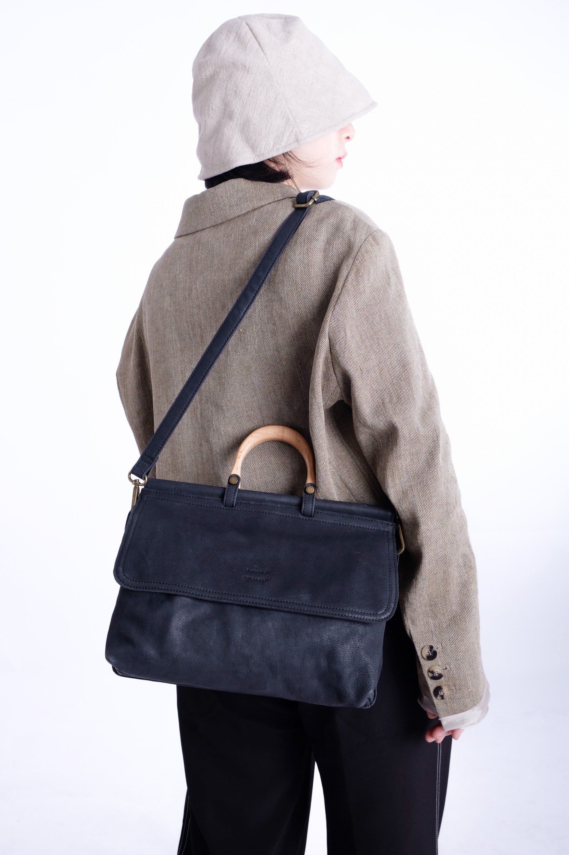 Alyssa shoulder bag is the perfect new member for your wardrobe. Made of textured calfskin in a mini briefcase shape with natural sense of beech handle and a long leather strap - a casual chic style.
