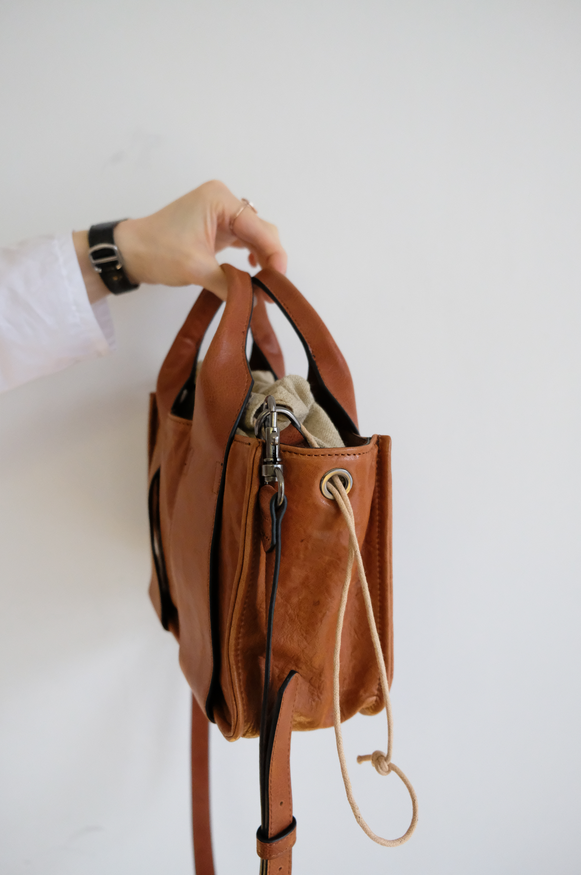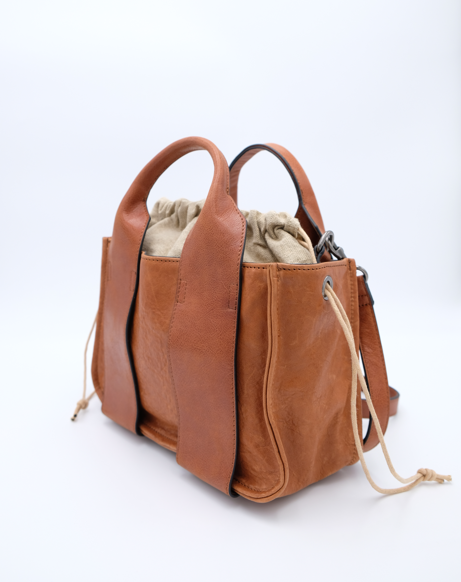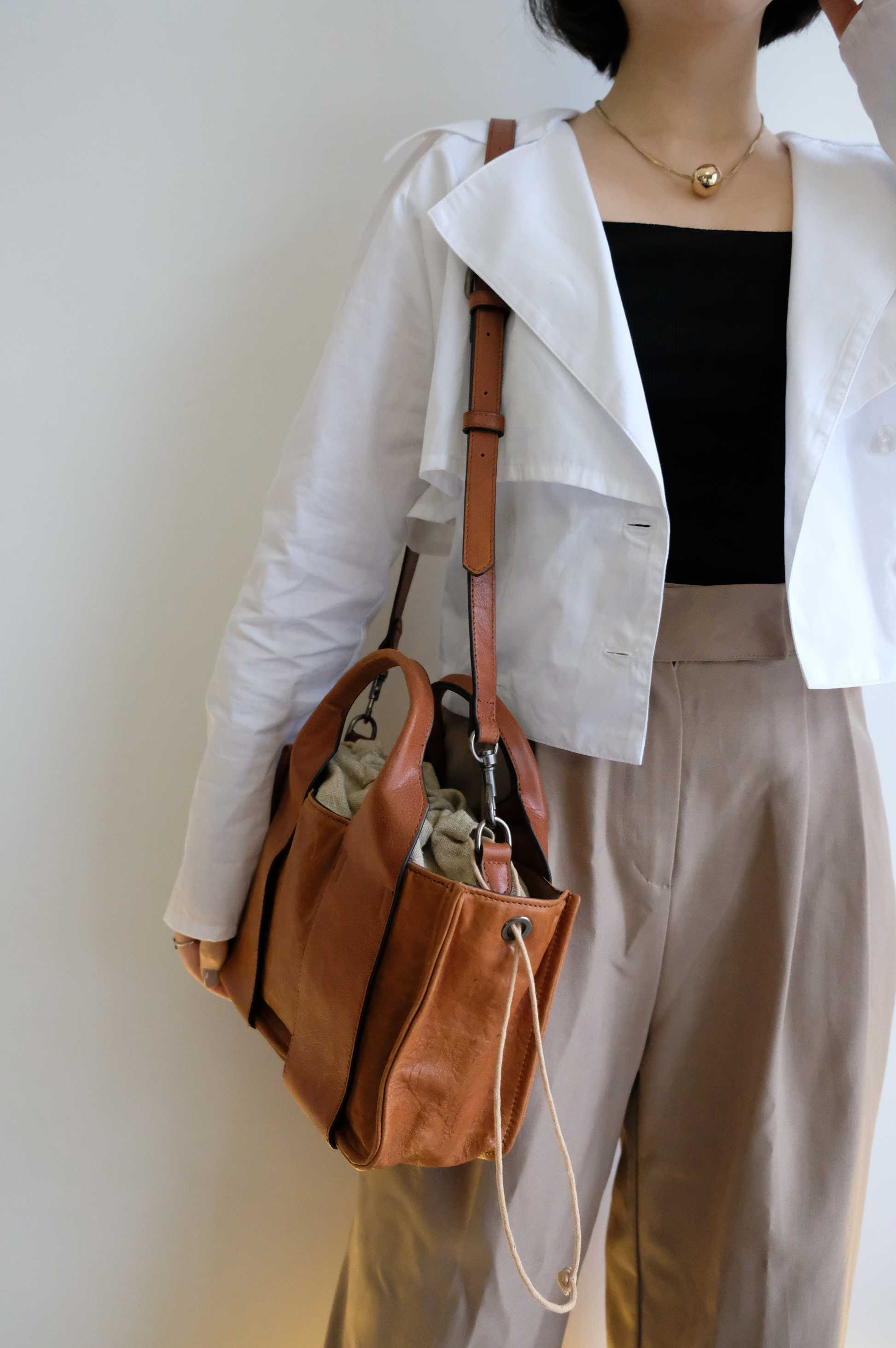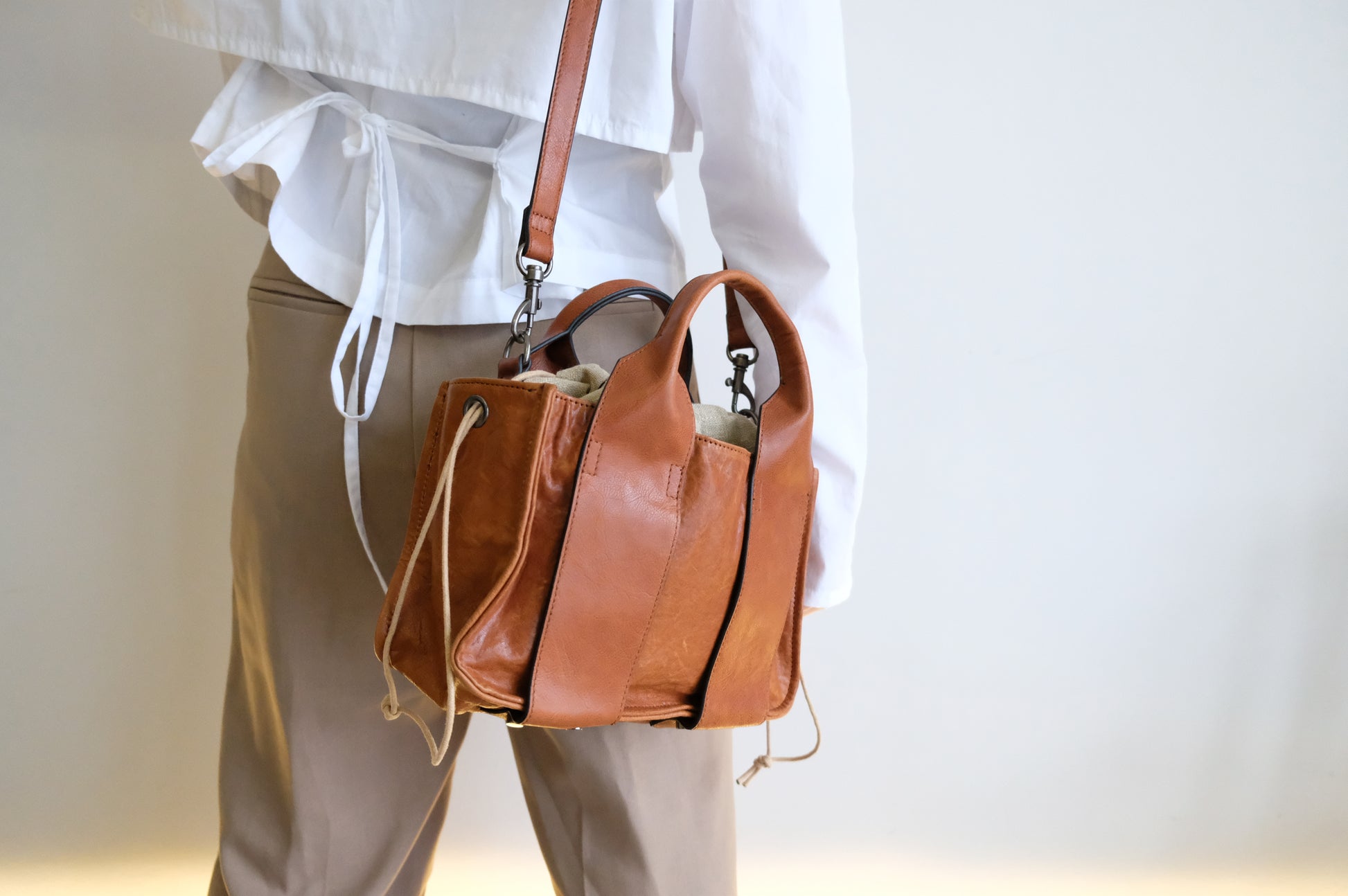 The classic leather tote is crafted with cowhide, draped handles with studs on the base. It is a chic design and match with various outfits. Long leather strap is ideal for you wear it crossbody.