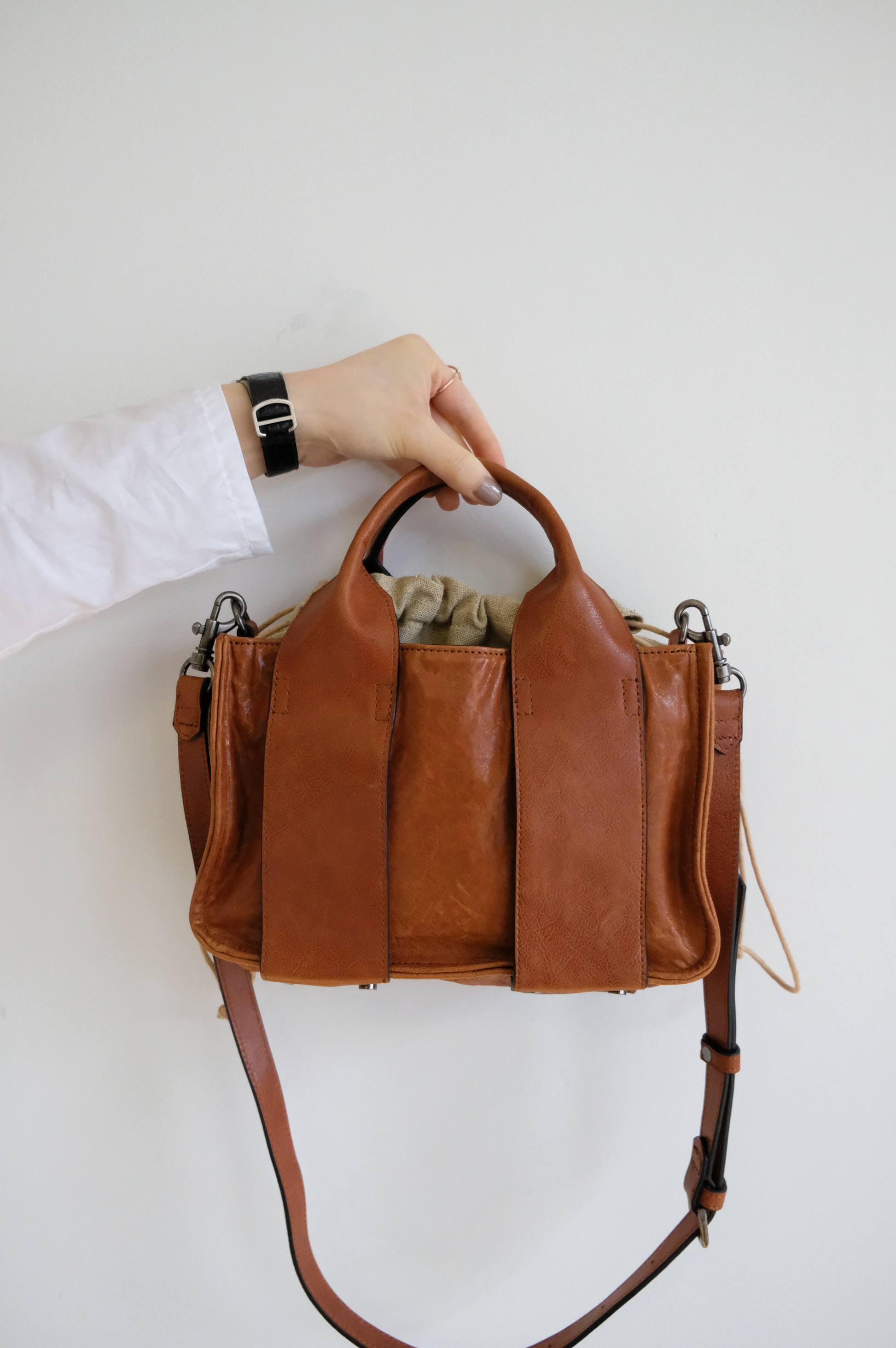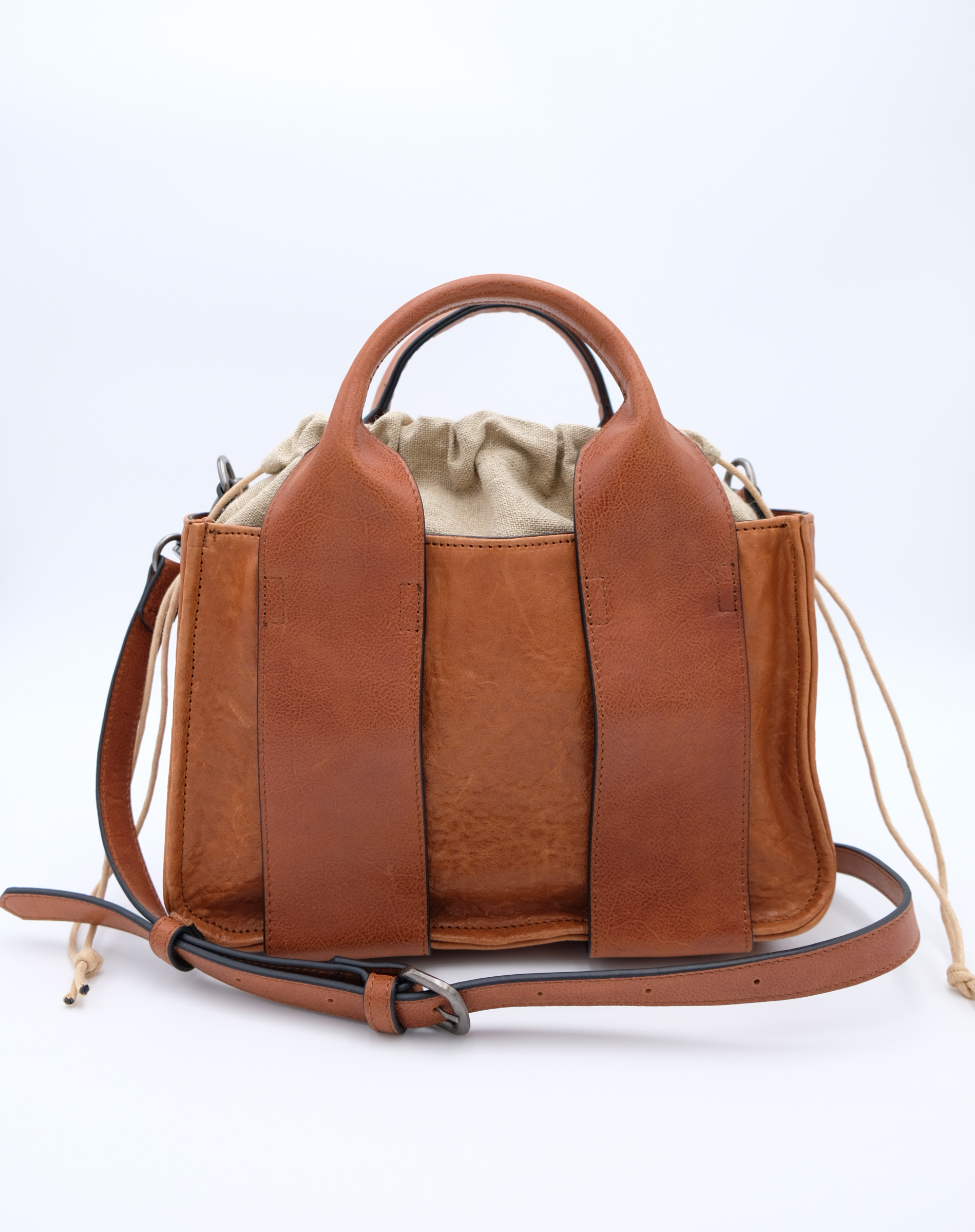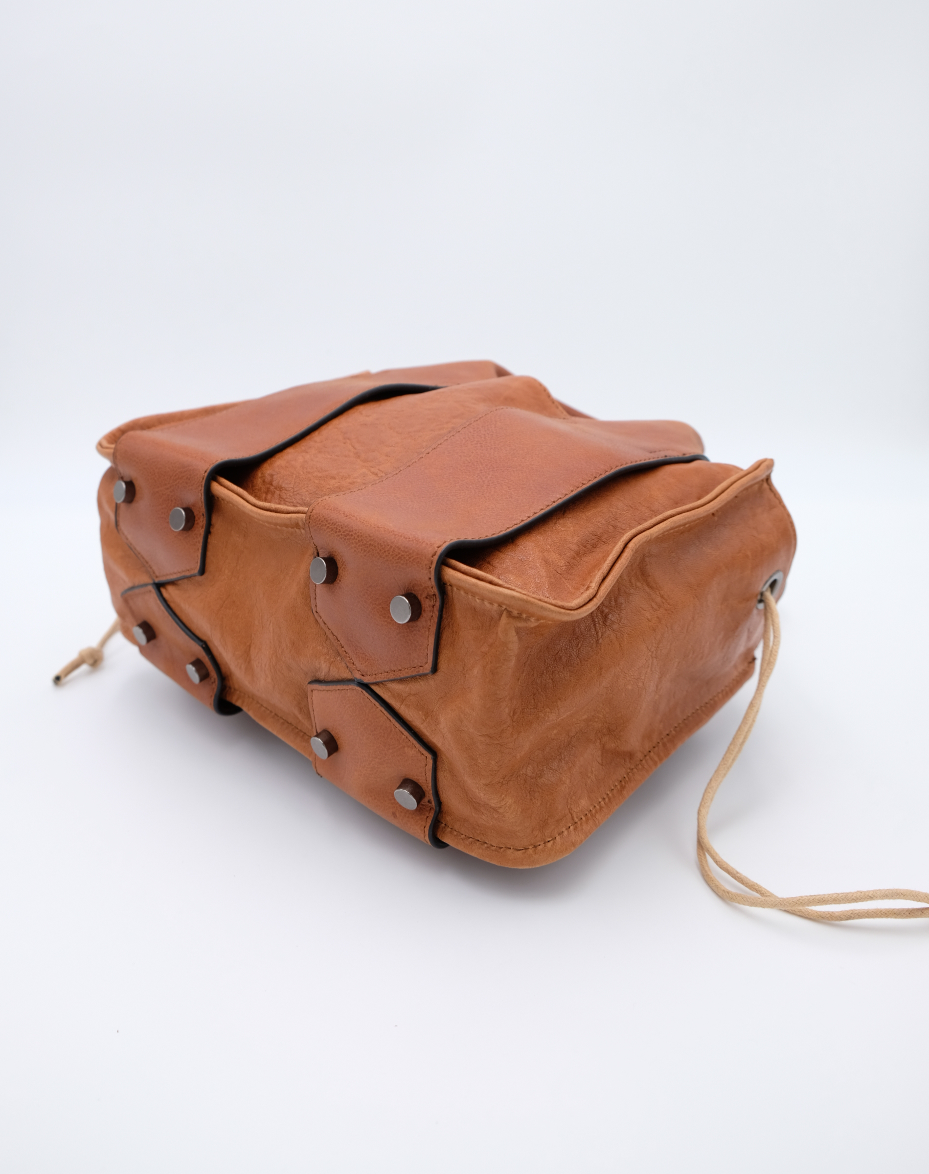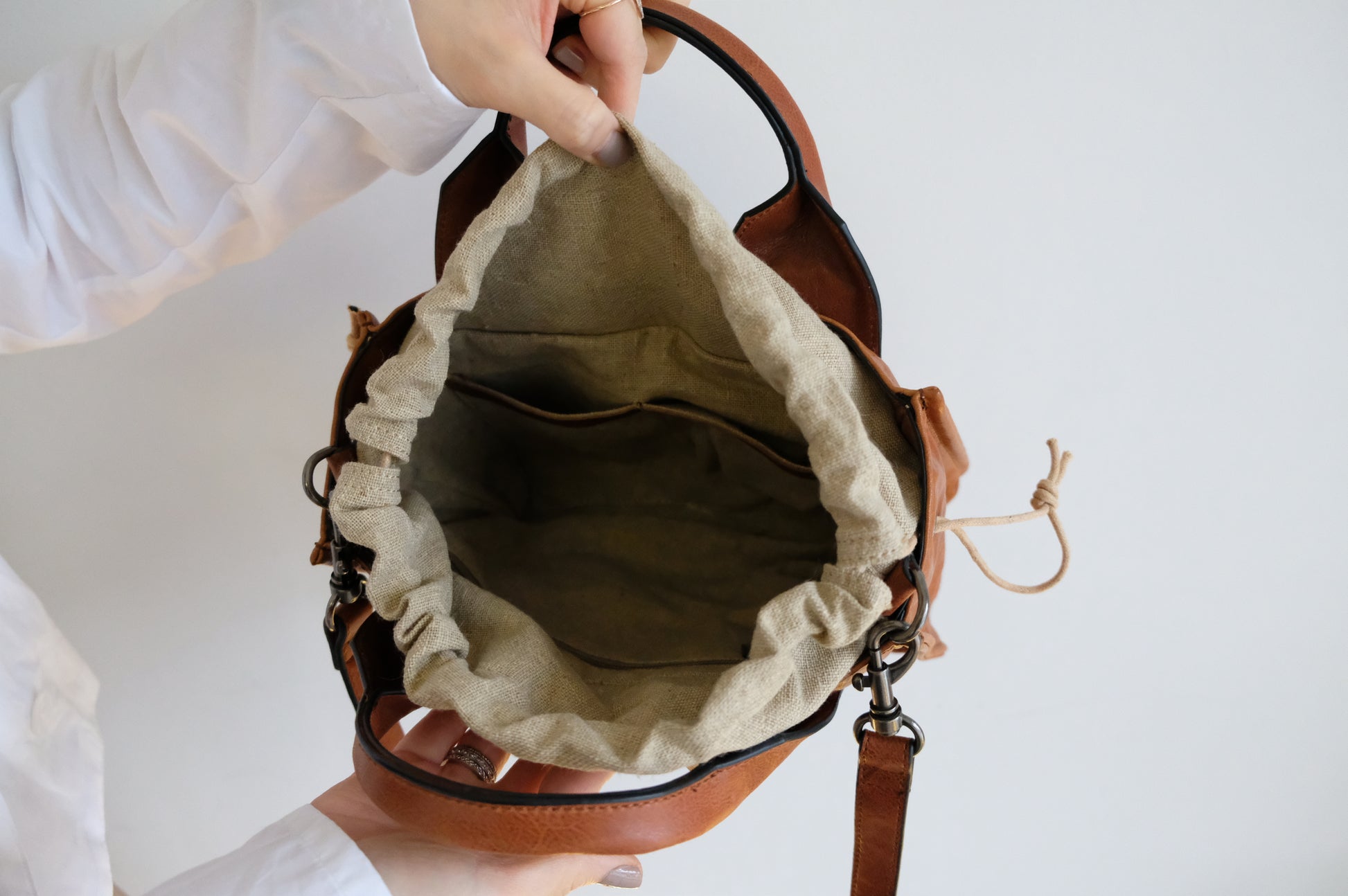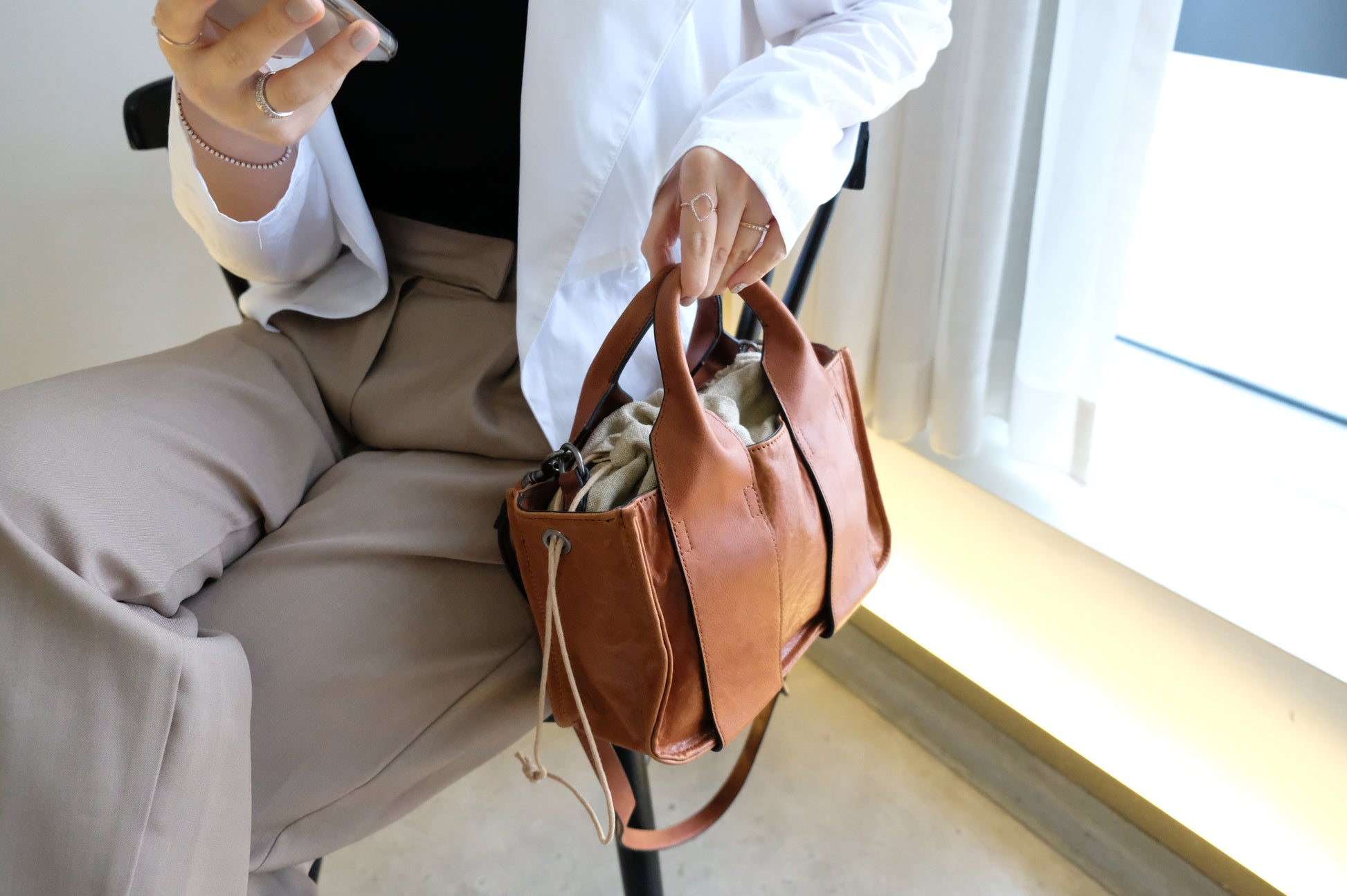 The classic leather tote is crafted with cowhide, draped handles with studs on the base. It is a chic design and match with various outfits. Long leather strap is ideal for you wear it crossbody.