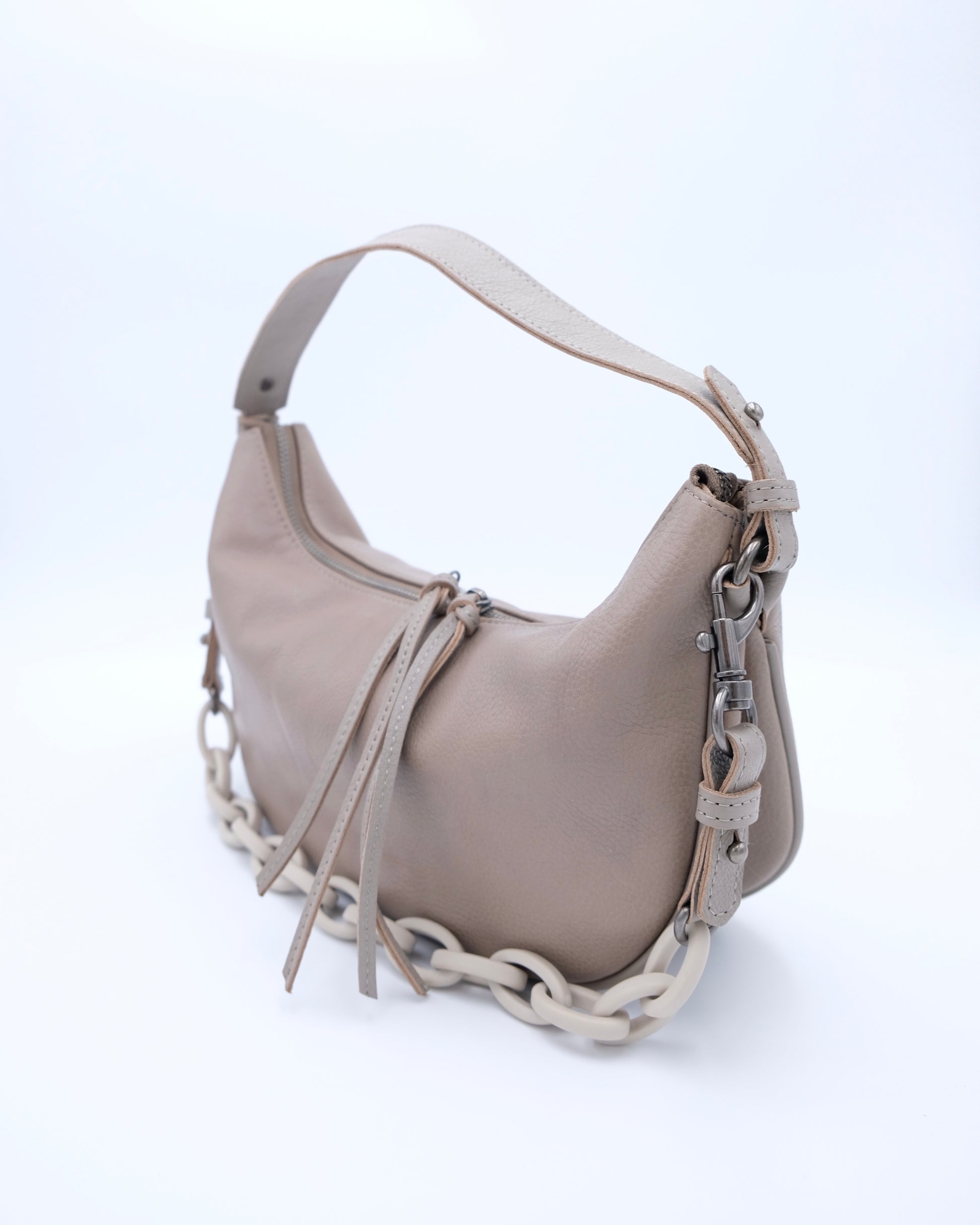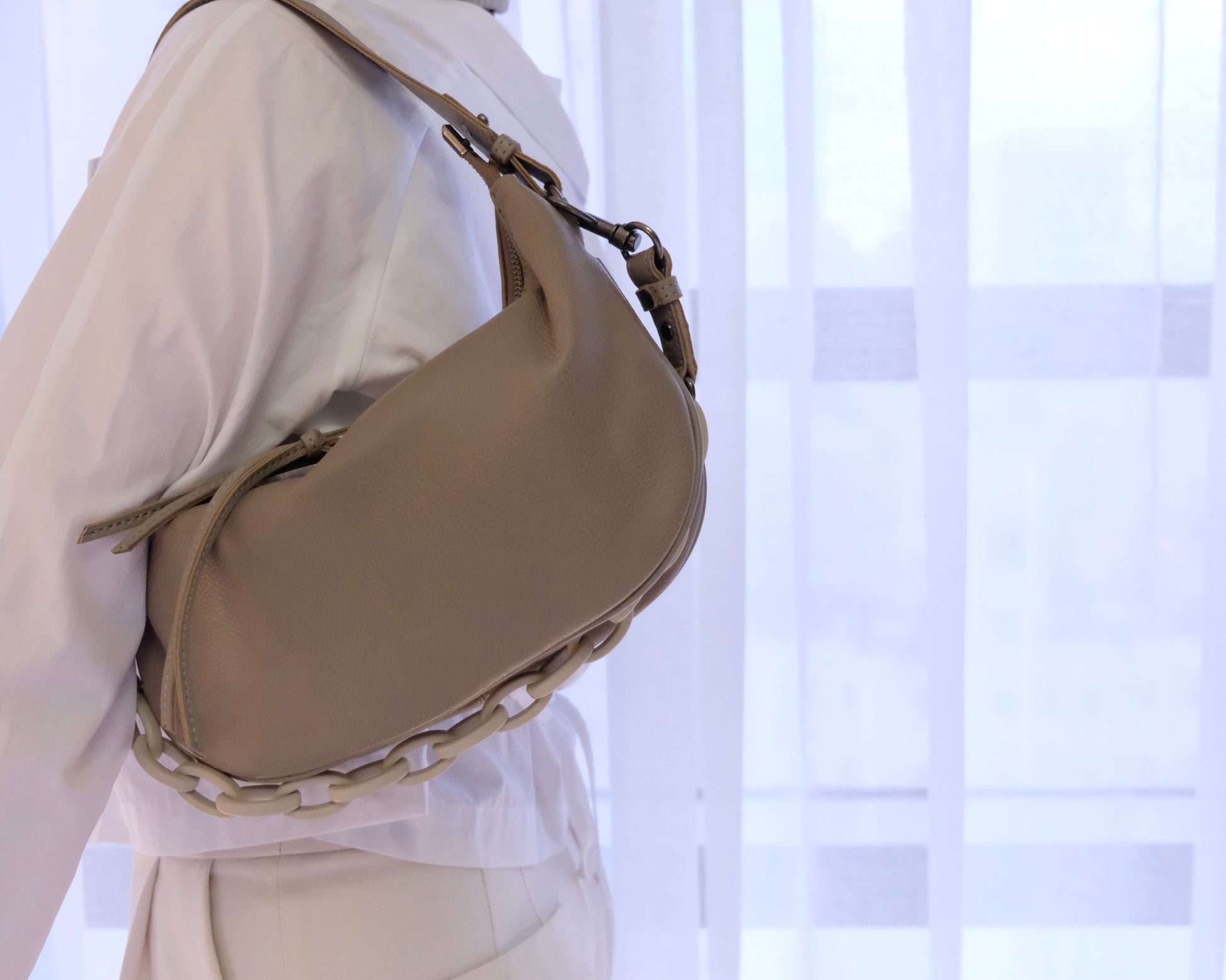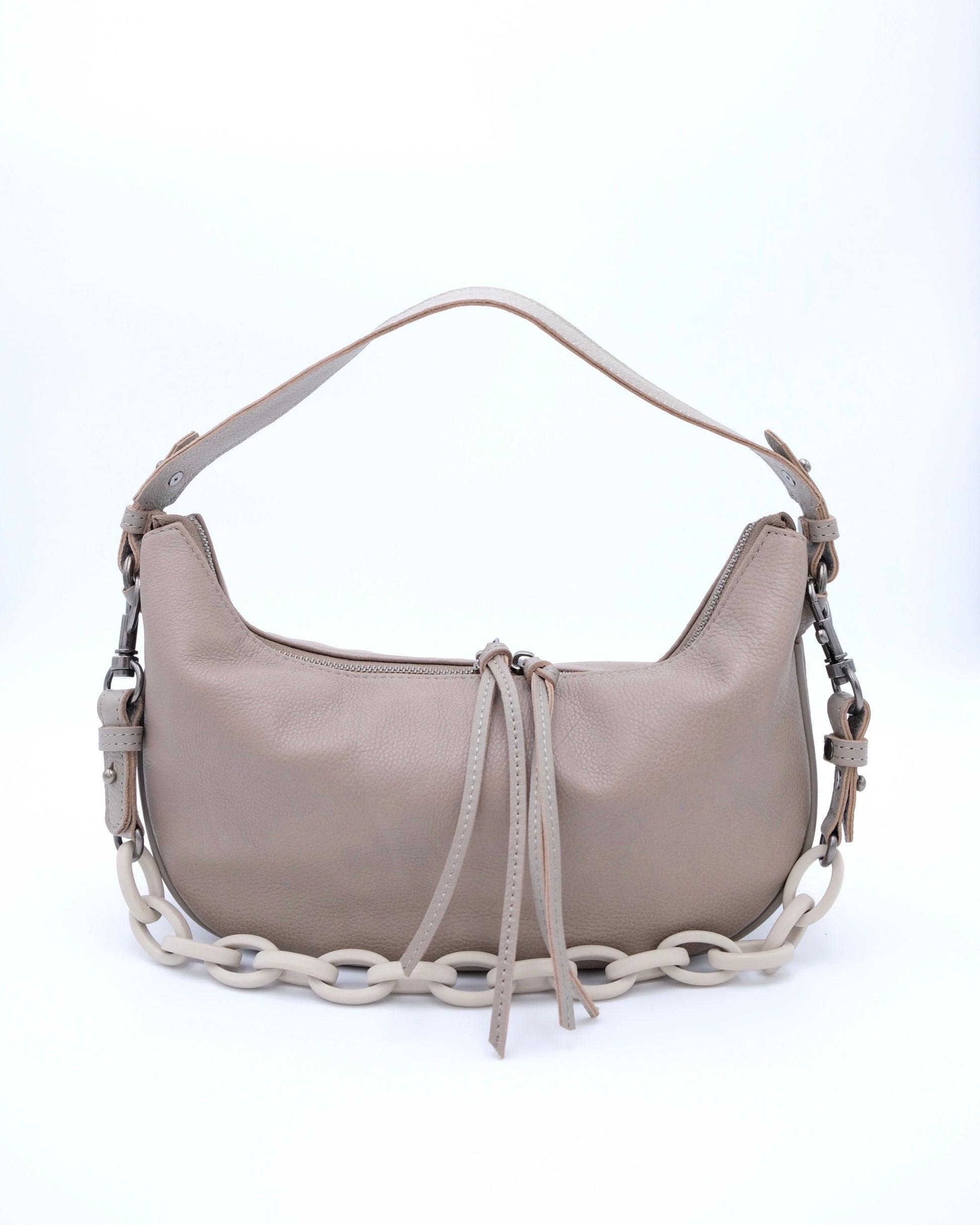 - Metal hardware details and plastic chain